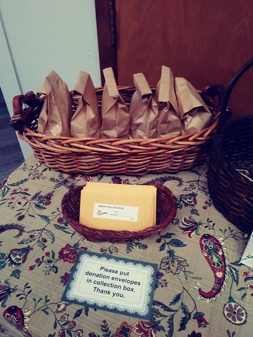 The small brown bags we assemble and distribute to the less fortunate men and women